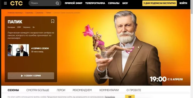 Российский телеканал СТС, показывающий телесериал "Папик" студии "Квартал 95", находится под украинскими санкциями с мая 2020 года.