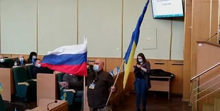 В Славянске на пленарное заседание городского совета 12 апреля принесли флаг России. Флаг государства-агрессора внес местный житель Василий Хоменко в рамках "флешмоба". Об этом сообщает местное издание "Деловой Славянск".