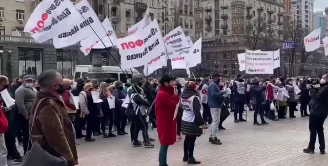 14 апреля представители бизнеса устроили протесты против локдауна у Киевской городской администрации. Детали и кадры с места событий опубликовала группа "PavlovskyNews" в соцсети "Фейсбук".