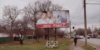 В Полтаве появился билборд с гомофобной рекламой против людей, поджигающих траву. На полотне изображены двое стоящих рядом мужчин. Один приобнял другого через шею, а тот, в свою очередь, прикоснулся к подбородку первого. Под фотографией значится надпись "Поджигатели травы?".