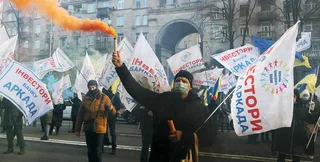 В Киеве также проходили акции протеста доверителей банка "Аркада", которые несколько лет ждут завершения строительства квартир.