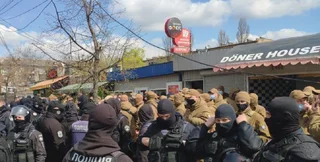 Между предпринимателями и правоохранителями начались столкновения прямо посреди улицы, несколько недовольных горожан забрались на крыши киосков, чтобы защитить их от сноса. В итоге силовики грубо задержали нескольких протестующих, поместили автобус и увезли в отделение.