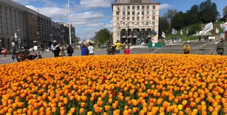 В центре Киева расцвели 100 тысяч тюльпанов, которые столице Украины подарило консульство Нидерландов.