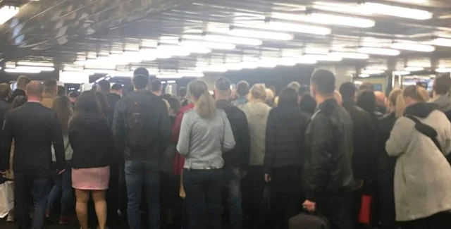 По данным издания, пассажиры недовольны ситуацией. Многие из них возмущаются, мол "какой смысл было устанавливать, если ничего не работает и приходится толпиться, а дистанция отсутствует". При этом люди в переходе стоят на ступеньках.