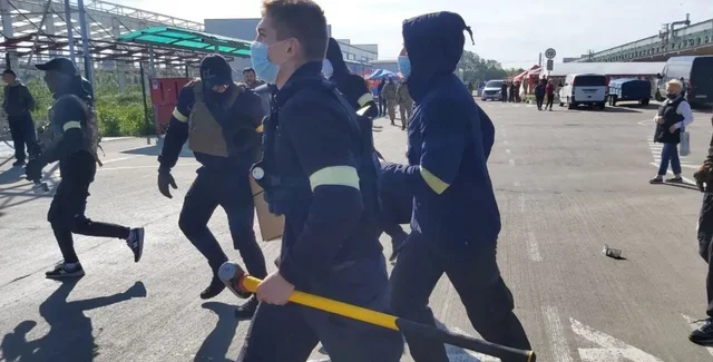 На проходной полицейские применили слезоточивый газ и скрутили четырех человек, которые мешали автобусам въехать на территорию рынка. После этого из здания выбежали десятки человек, однако обошлось без драки и пострадавших. Вскоре два взвода правоохранителей отправились в павильон вместе с предполагаемыми захватчиками.