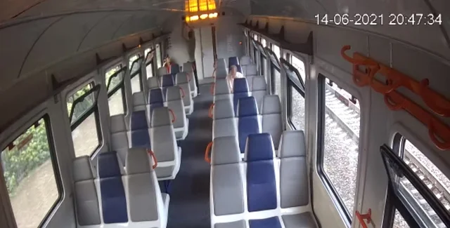Пресс-служба опубликовала в социальной сети Facebook видеозапись, на которой молодой парень дотянулся до оборудования в вагоне и тамбуре электрички, предполо6жительно выдернув динамик громкоговорителя, вместе с ним по вагону ходил еще один юноша. Еще один пассажир, который находился в вагоне, поспешно выбежал на станции.