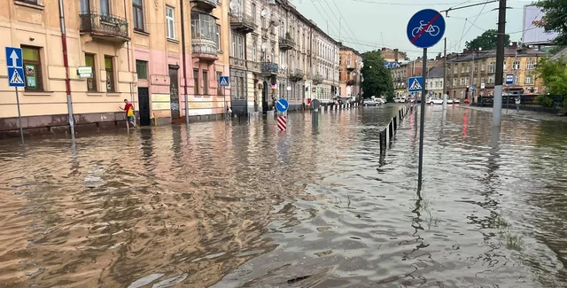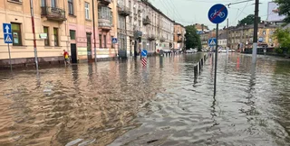 20 июня во Львове прошел сильный ливень, который подтопил некоторые улицы. Некоторые местные жители начали использовать лодки в качестве транспорта.