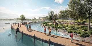 Проектом предусматривается строительство пешеходной набережной с велодорожками, спортивные площадки, культурно-развлекательный центр с кинотеатром, художественными галереями и ресторанами.
