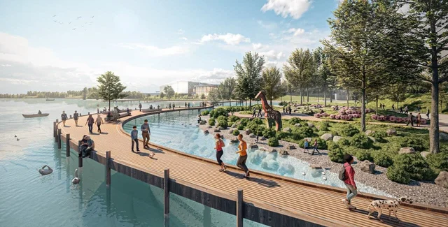Парк, велодорожки и ТРЦ: в Киеве показали проект благоустройства озера Вырлица (фото)