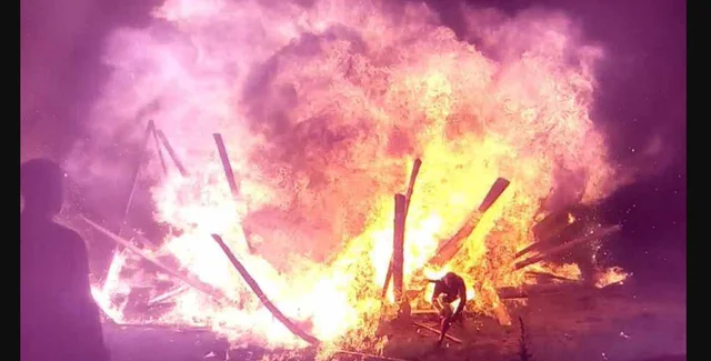 Устроители праздника на своем опыте убедились, что не нужно зажигать пиротехнику рядом с канистрами с бензином.