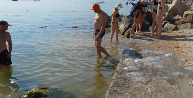 "Отдых испорчен": В Бердянске люди не могут купаться в море из-за нашествия медуз (видео)