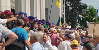 Ветераны силовых структур требуют встречи со спикером Дмитрием Разумковым, а также выплаты прибавок к пенсиям, анонсированных президентом.