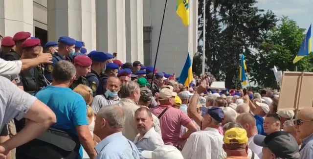 Протестующим удалось пробраться к самому зданию, где их оттеснили сотрудники полиции и Национальной гвардии. Началась потасовка, участники акции пытаются прорваться через кордон из десятков силовиков, которые выстроились перед колоннами. Правоохранители применили против митингующих слезоточивый газ. В итоге пенсионеров оттеснили, часть из них перекрыла дорогу на перекрестке Грушевского и Шелковичной улиц.