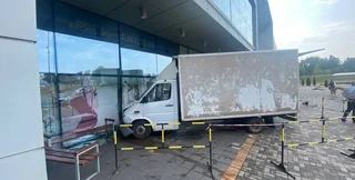 После этого машина въехала в витрину "Ашана" и разбила ее.