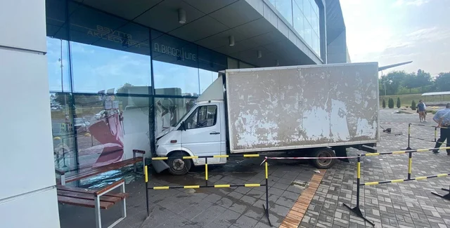 В Кривом Роге грузовой автомобиль врезался в торгово-развлекательный центр "Ашан".