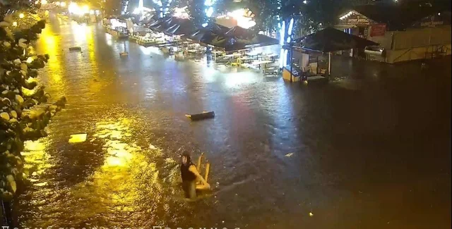 Из-за наводнения в ряде районов города отключился свет, а в аэропорту не могли сесть самолеты.