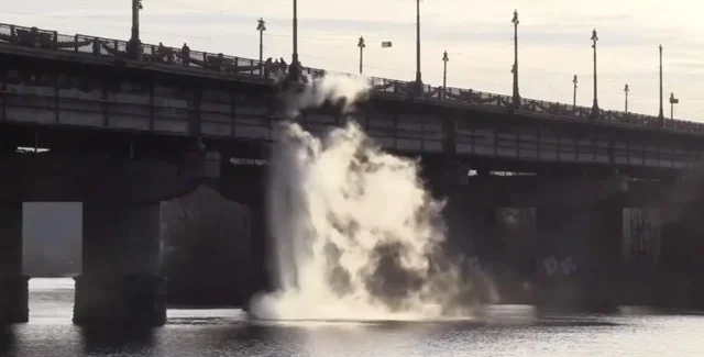 Мост Патона в Киеве "прорвало" четвертый раз за месяц (видео)