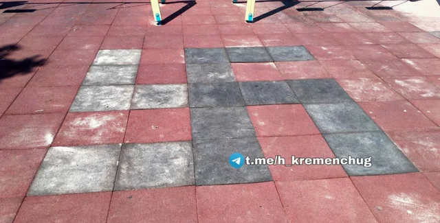 "Дети перевернули". В Кременчуге на детской площадке появилась свастика из плитки (фото)