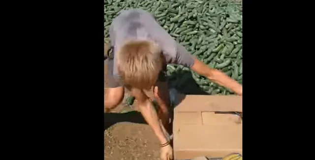 В итоге, мужчина высыпает огурцы на землю и показывает своих овец, которые, вероятно и будут есть собранный урожай.