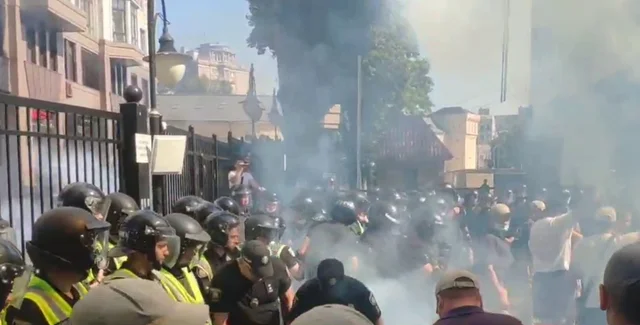 Ранее писали, что "Нацкорпус" устроил акцию "Остановим капитуляцию" в центре Киева. 14 августа участники собрались на Майдане и прошлись до Офиса президента, где были остановлены полицией. Во время столкновения в ход пошли шины, камни, слезоточивый газ, файеры и дымовые шашки.
