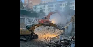 "Застройщик в пять утра под прикрытием 30 титушек загнал строительную технику и уничтожил дом Барбана конца XIX века", – написал он и опубликовал видео, на котором виден процесс разрушения стен здания.