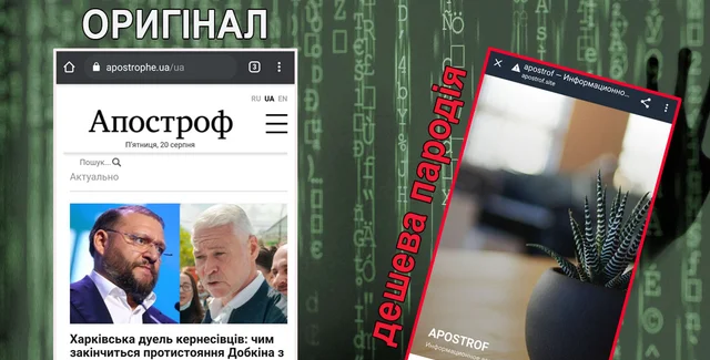Конкуренты издания Аpostrophe.ua ("Апостроф") запустили клон сайта с очень похожим названием — Аpostrof.site ("Apostrof") и начали рекламировать свои материалы в сети.