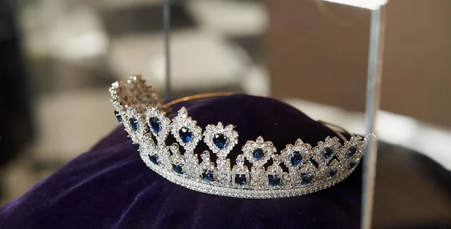 Рекордно дорогая корона изготовлена из 18-каратного золота и содержит 27 сапфиров и 1250 бриллиантов разной формы, весом 60 и 220 карат соответственно. Это произведение искусства от Jacob&Co оценивается в три миллиона долларов США.