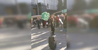 "Киевляне и сами могут управлять своим городом. И нам эти руки, которые тянутся из этого здания в сторону города, не нужны. Потому мы их отрываем!", — сказал мужчина в микрофон, после чего под аплодисменты собравшихся "оторвал" импровизированную руку.