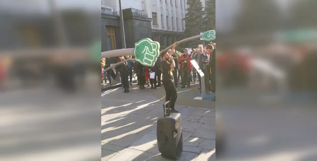 Участники "Марша за Киев", который проходит в столице 2 октября, устроили перформанс под стенами Офиса президента. На кадрах, опубликованных в соцсетях, видно, как граждане прикрепили к зданию импровизированные руки, которые впоследствии сами же и "оторвали".