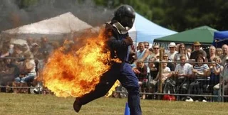Рекордсмен облил себя бензином, поджег и пробежал почти 80 метров, побив, таким образом предыдущий рекорд, составлявший чуть менее 70 метров.