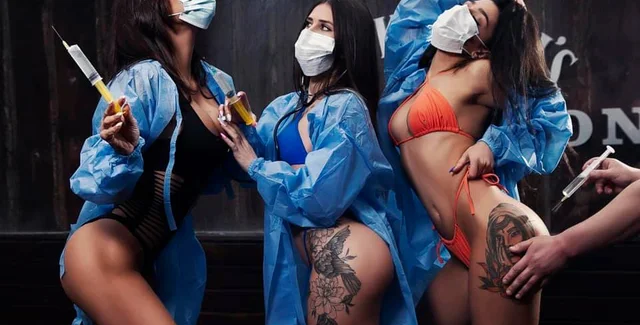 По словам ресторатора, примерно за полгода до появления первой вакцины от коронавируса он вместе со своей командой придумал "спасательную стратегию" — "волшебный укол в попу, который всех спасет". Так Радуцкий объяснил концепцию снимков, на которых девушки в купальниках, медицинских халатах и масках делают друг другу уколы.