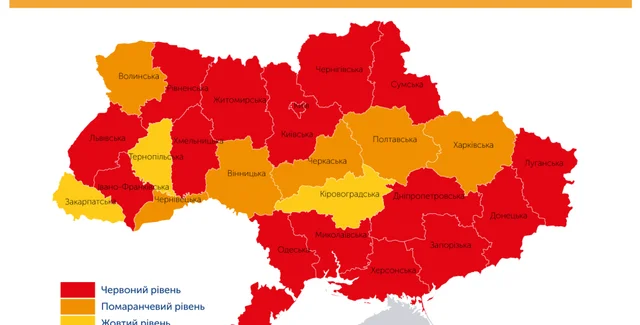 Лишь три области находятся в "желтой зоне" – Закарпатская, Кировоградская, Тернопольская.