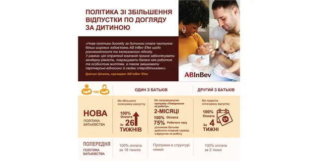 Компания AB InBev Efes официально вводит новый стандарт отпусков при рождении ребенка. Уже с ноября расширенная политика поддержки родительства заработает в Украине.