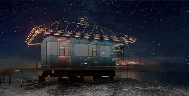 Арт-объект будет собран на территории станции из металлических труб, а усиливать устойчивость конструкции авторы проекта намерены тросами. Перед этим "эскиз дома" соберут на территории Украины, чтобы протестировать его пригодность для установки в сложных погодных условиях Антарктиды.