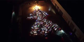 Автовладельцы включили фары и аварийки, а также фонарики телефонов, из-за чего вид на "елку" с высоты был впечатляющим — все светилось, как на праздник. Люди загадывали желания, пели новогодние песни, фотографировали свои автомобили.