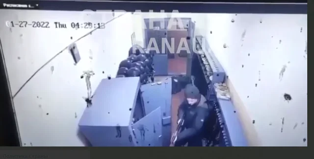 На кадрах видно, как военный находится в оружейной комнате, стреляет в других солдат и достает вещи из шкафчика. Рябчук перед побегом успел вставить в автомат новый магазин.