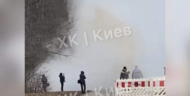 В Киеве в районе Кольцевой дороги и проспекта Глушкова прорвало трубу, из-за чего образовался фонтан высотой в несколько метров. Видео сняли очевидцы, затем оно появилось в местном Telegram-канале.