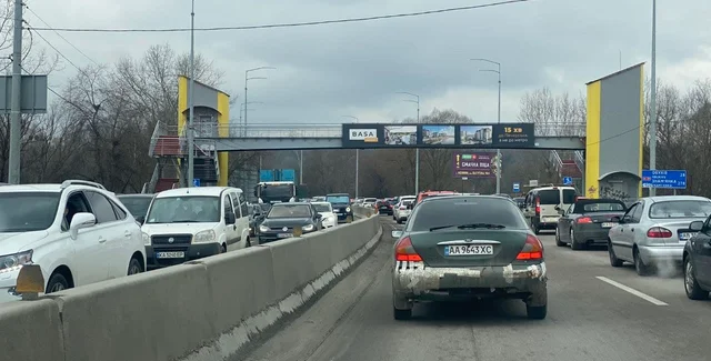 На Обуховской трассе длинные очереди из автомобилей на выезд из Киева (фото, видео)