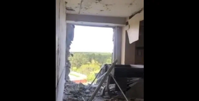 В результате обстрела здание получило существенные повреждения, пострадали несколько этажей.