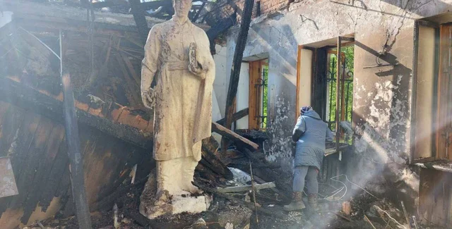 Пожар возник после попадания ракеты во время обстрела области войсками РФ. Ценные экспонаты удалось спасти.