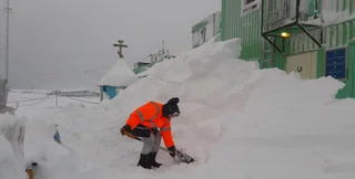 Несмотря на то, что интенсивный снегопад позволяет полярникам сделать атмосферные фотографии, он еще и добавляет им работы. Так, вся команда станции пытается оперативно расчищать снег, ведь повышение температуры до +1°С делает его очень тяжелым и в условиях Антарктики быстро превращает в лед.