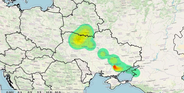 Модель, основанная на метеорологических условиях по состоянию на 15-18 августа, демонстрирует, что под угрозой окажется значительная часть Украины, в том числе и столица, а также Беларусь, Польша и страны Балтии.