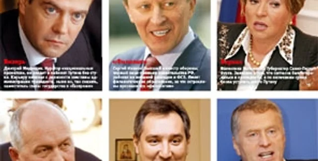 Во многом эти люди пересекаются с так называемыми "силовиками", — их возглавляет начальник ФСБ Николай Патрушев. Эта группа не прочь видеть на президентском посту бывшего министра обороны, первого вице-премьера Сергея Иванова. Им будто бы противостоят "либералы" (Роман Абрамович) со своим кандидатом Дмитрием Медведевым — вице-премьером и председателем совета директоров "Газпрома". Деление на два кремлевских клана очень условно, как условно и то, что Путин будет выбирать между двумя наиболее рейтинговыми кандидатами. Пока новоявленные "кремленологи" гадают по количеству синхронов в телевизоре, кто из этих двух преемник (последние месяцы первенство уверенно держит Иванов), Владимир Владимирович может ехидно посмеиваться — ведь пульт, управляющий всем российским ТВ, находится в президентских руках. Поэтому искушенные политологи называют десятки фамилий, но с постоянными оговорками: неизвестно, что придет в голову ВВП. "Темные лошадки", не мелькающие на экранах, но имеющие очень большие шансы, — шеф Российских железных дорог Владимир Якунин и руководитель кремлевской администрации Сергей Собянин. Среди преемников называют имена "технического" премьера Михаила Фрадкова, мэра Юрия Лужкова, министров Сергея Лаврова, Германа Грефа и Сергея Шойгу, а также бывшего "путинца", а нынче записного оппозиционера Михаила Касьянова. В ЛДПР, как это часто бывает, нашлись оригиналы и вполне серьезно предложили сделать президентшей Людмилу Путину.