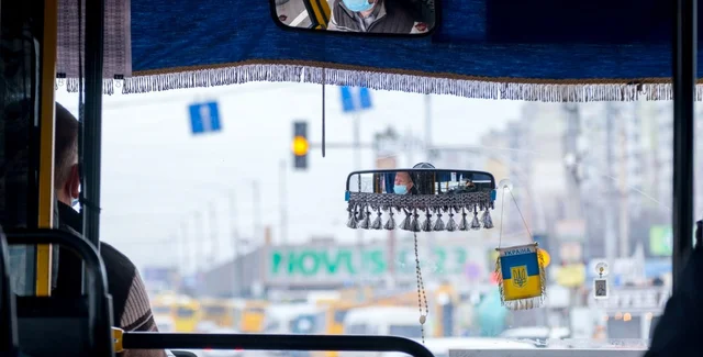 На опубликованном пассажирами маршрутного автобуса в Киеве снимке видно, что на перегородке за водителем установлена табличка, где большими буквами указано "В день смерти Путина проезд бесплатный".