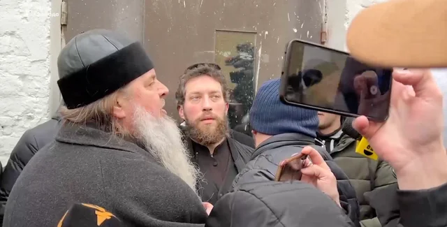 По словам авторов контента, архимандрит УПЦ МП Федор вызвал по рации подмогу, чтобы усилить блокировку здания.