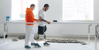 Через несколько недель пациента доставили в Винницу на реабилитацию. Денис считает, что ему повезло с хирургом, который в мирное время оперировал щитовидные железы и животы, ампутацией же занялся впервые. На второй день после перевода из Днепра он посадил бойца, чтобы тот привыкал. В дальнейшем реабилитологи каждый день занимались мужчиной, постепенно увеличивая время тренировок, чтобы тот восстановил тонус мышц спины.