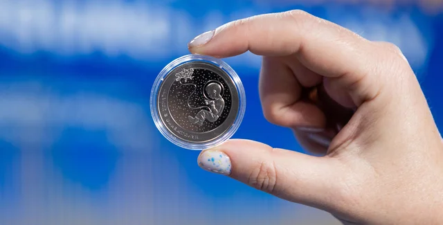 Монета "Рожденный в Украине" имеет два варианта, они изготовлены из серебра и нейзильбера. Номинал обеих монет — 5 гривен.