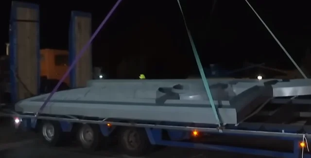 По словам журналиста, сначала тризуб необходимо доставить на второй этаж. Он отметил, что герб, который весит 450 килограмм, нужно поднять почти на 100 метров в высоту.
