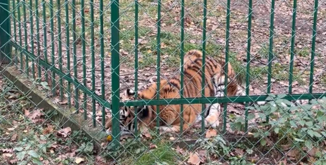 Испугавшись ракетного обстрела Киева и пригорода 11 ноября тигрица Тигрюля, проживающая в Центре защиты диких животных, получила травму
