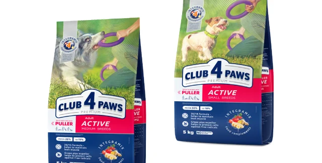 Якщо собака належить до активної породи чи відрізняється непосидючим характером, відповідальному господарю слід не лише забезпечити улюбленцю необхідний рівень навантажень, але й подбати про харчування для підтримання фізичної форми. Гарним рішенням для собак, що не належать до робочих, службових порід, але багато рухаються, займаються собачим спортом, може бути новий корм лінійки "Актив" від CLUB 4 PAWS. Виробник пропонує 2 раціони, збалансовані під потреби собак малих і середніх порід. Вони відрізняються високою енергетичною цінністю, підвищеним вмістом білків і жирів (у складі переважають білки тваринного походження, особливо важливі для м’язів), а також збагачені цінними антиоксидантами, джерелом яких є вичавка виноградних кісточок. Виробник рекомендує корм CLUB 4 PAWS АКТИВ для собак, що регулярно виконують вправи з тренажером Пуллер (на кожній упаковці є короткий опис вправ і QR код з посиланням на відеоуроки PULLER). Таке поєднання допоможе підтримувати життєвий тонус вихованця на належному рівні.